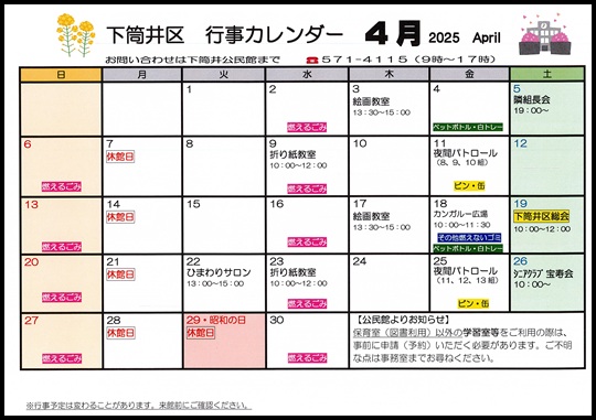 7月回覧配布済みのカレンダーに、下記行事の記載もれがありましたので、ご確認お願いします。